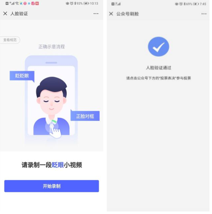 (2)点击“开始录制”,按要求拍摄眨眼视频进行人脸验证,验证通过后可进行债权申报和后续投票表决操作。