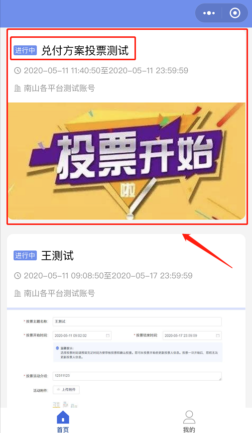 2、进入投票系统后,点击“兑付方案投票”进入方案投票页面,查看投票内容详情(下图为测试页面)。