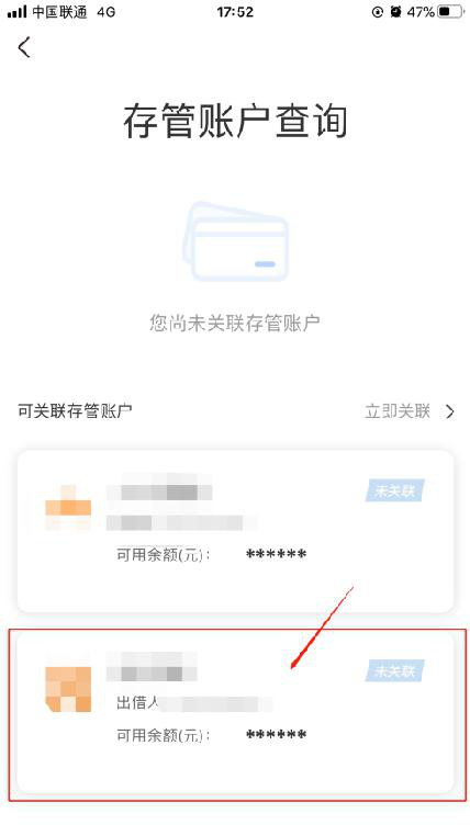 1、【首页】点击存管查询进入【存管账户查询】页面,点击下方的【点击关联更多存管账户】进入【可关联存管账户】。