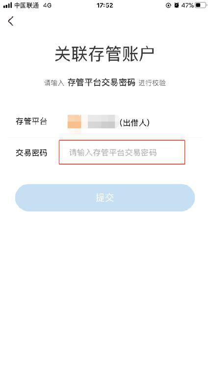 (2)输入交易密码,验证密码通过,即完成关联,关联成功跳回存管查询页面。