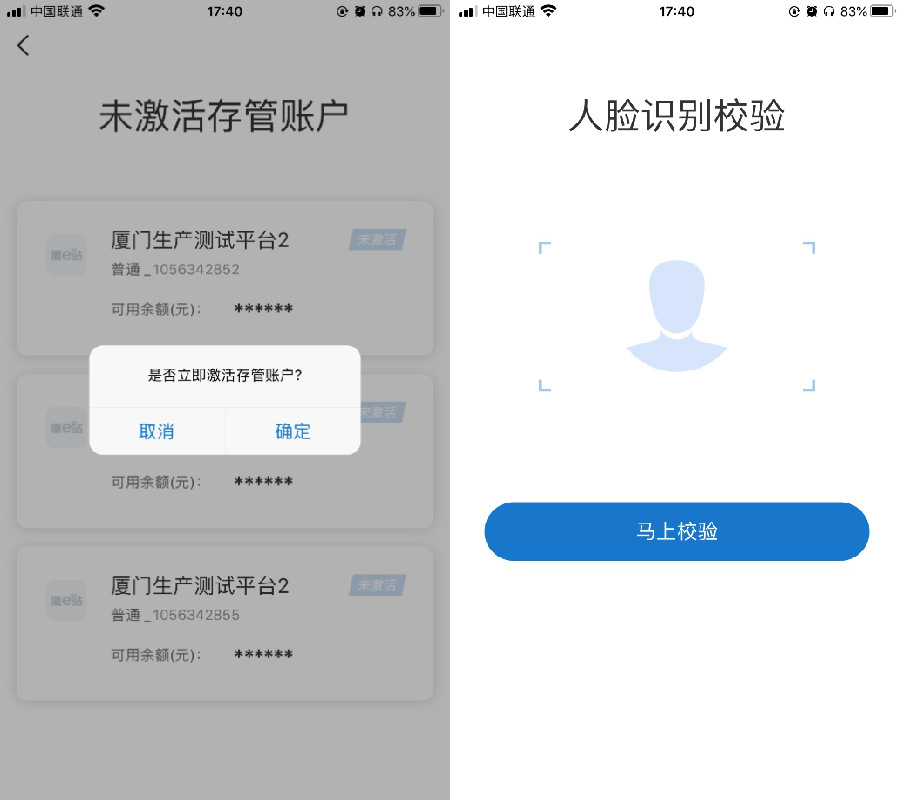3、点击需要激活的存管账户,会引导出借人进行人脸识别,人脸识别完成后,进入激活存管账户页面。